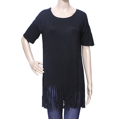 3163-14121201 FRINGE T SHIRT BLACK