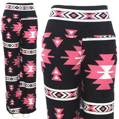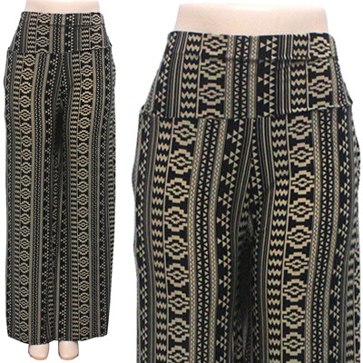 3168-L32 Palazzo Pants Retro Aztec Black