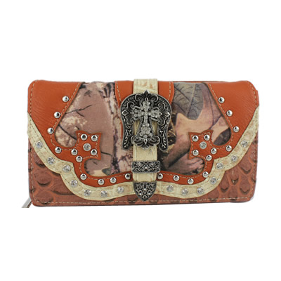 WL12134-1B ZIPPER WALLET CAMO BROWN