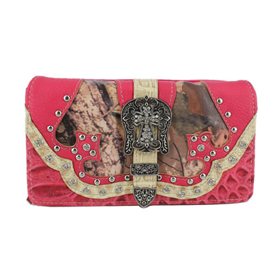 WL12134-1B ZIPPER WALLET CAMO FUCHSIA