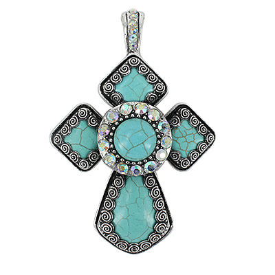20-13051734 CROSS PENDANT TURQ CLEAR AB