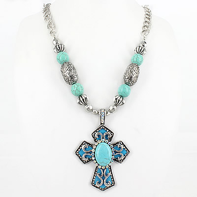 20-13051725 CROSS NECKLACE TURQ CLEAR AB