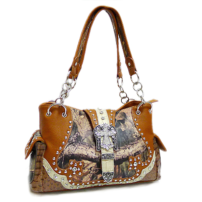 HL12134-1 BUCKLE HANDBAG CAMO BROWN