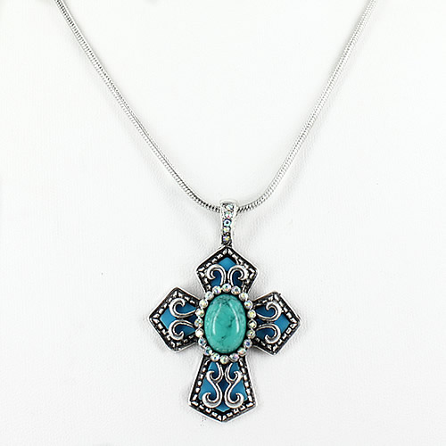 20-13051726 CROSS NECKLACE TURQ CLEAR AB