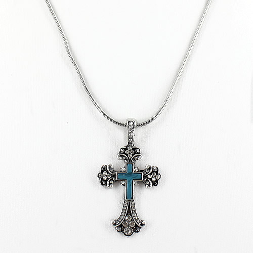 20-13061615 CROSS NECKLACE TURQ CLEAR
