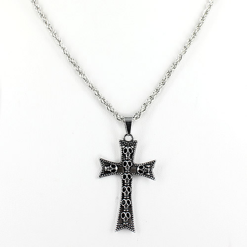 47-4236 MEN SKULL CROSS NECKLACE BLACK