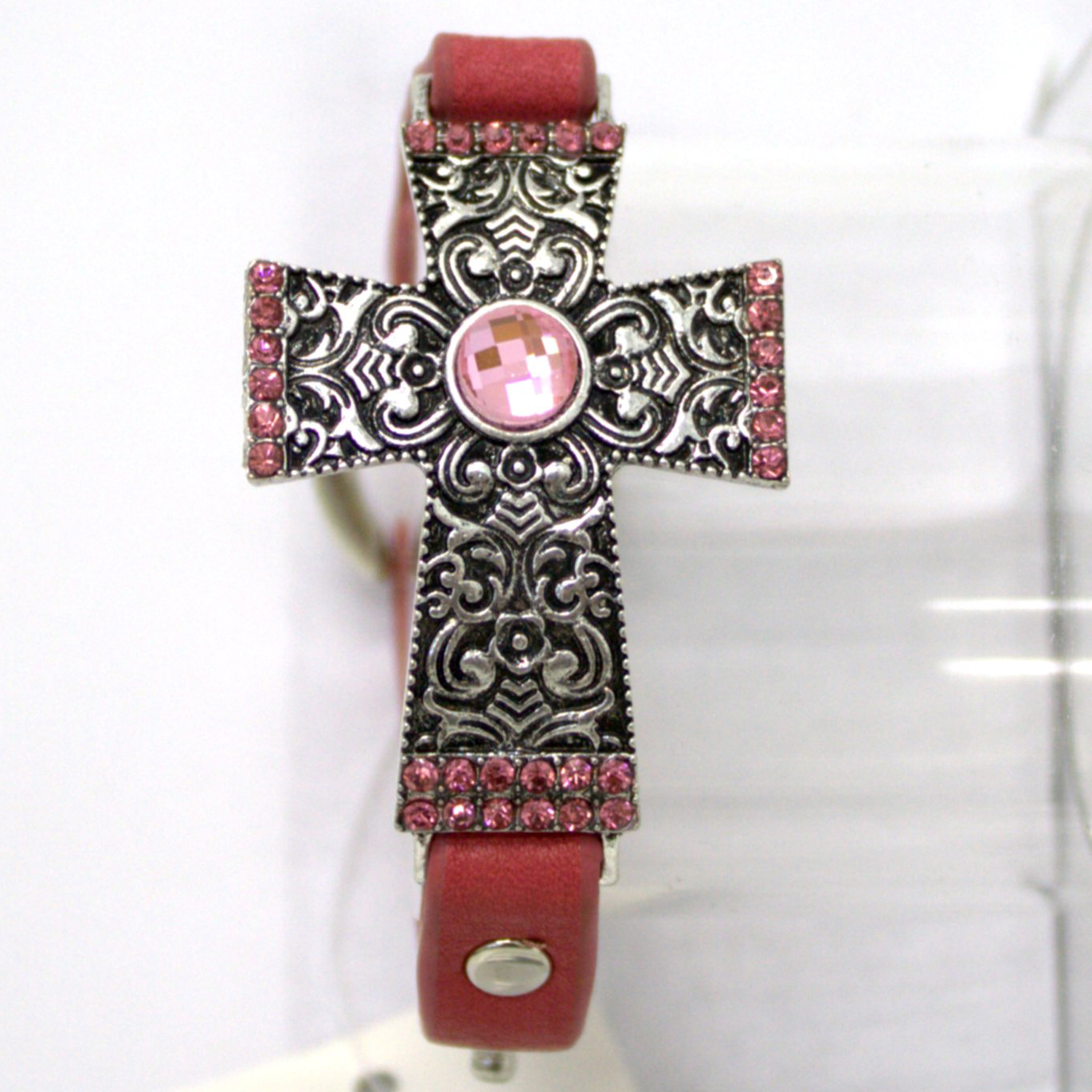 B1013 CROSS LEATHER BRACELET HOT PINK