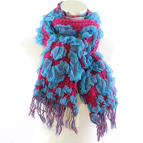 3122-13080303 KNITTED FLOWER TURQ SCARF