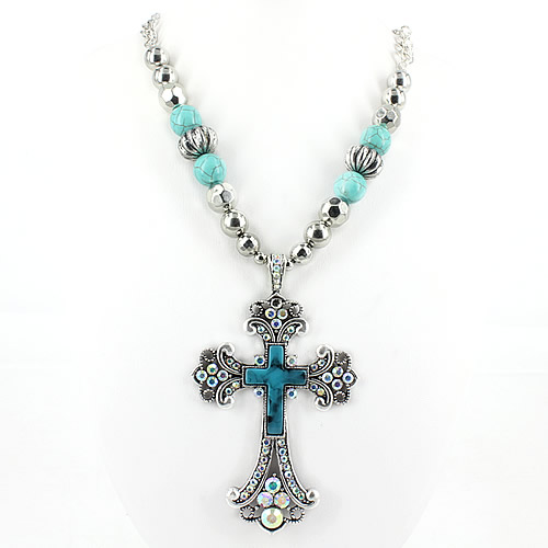 1120-13061611 CROSS NECKLACE CLEAR AB