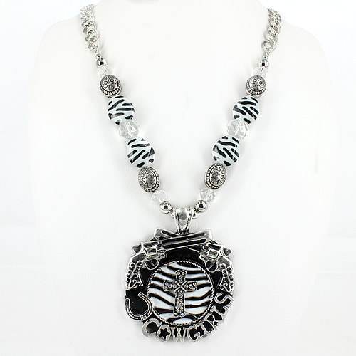 20-13061649 CROSS ZEBRA NECKLACE BLACK