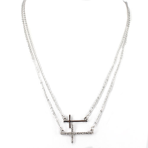 20-13042105 DOUBLE CROSS NECKLACE SILVER