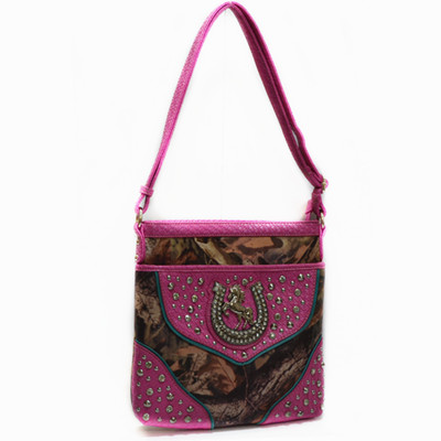 HH395-5 HORSE CAMO MESSENGER BAG FUCHSIA