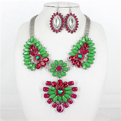 1160-13110902 FACET BEADS NECKLACE GREEN