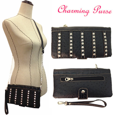 HH413-9 OSTRICH CHARMING PURSE BLACK