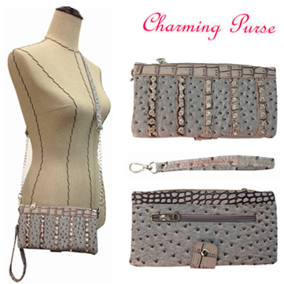 HH413-9 OSTRICH CHARMING PURSE GREY