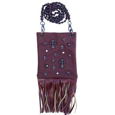 HH421-6 MINI BAG CROSS FRINGE BROWN