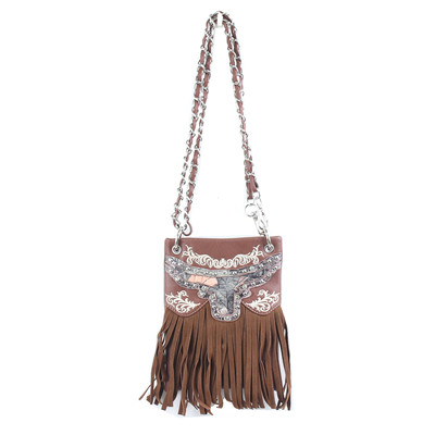 HH406-1 LONGHORN FRINGE HANDBAG BROWN