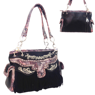 HH406-1 LONGHORN FRINGE HANDBAG BLACK