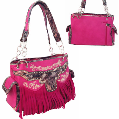 HH406-1 LONGHORN FRINGE HANDBAG FUCHSIA