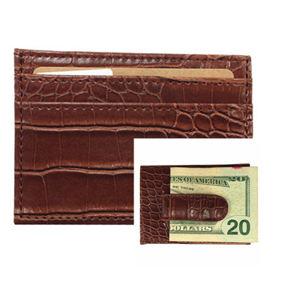 C1102 CARD/MONEY CLIP HOLDER CROC BROWN