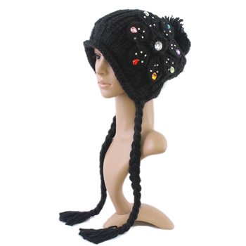 39019-12072012 SNOWBALL WINTER HAT BLACK
