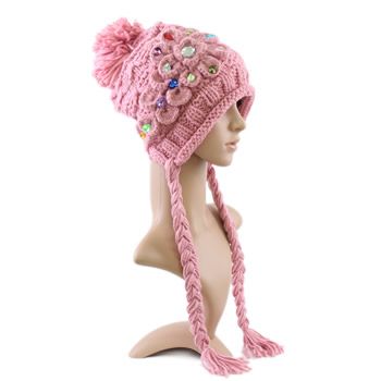 39019-12072012 SNOWBALL WINTER HAT PINK