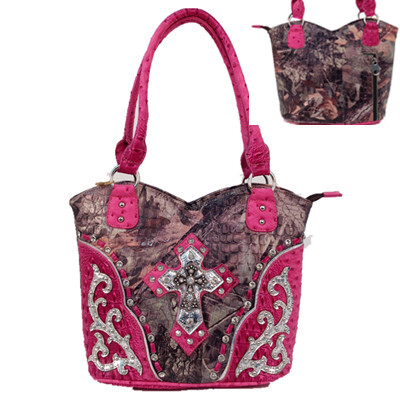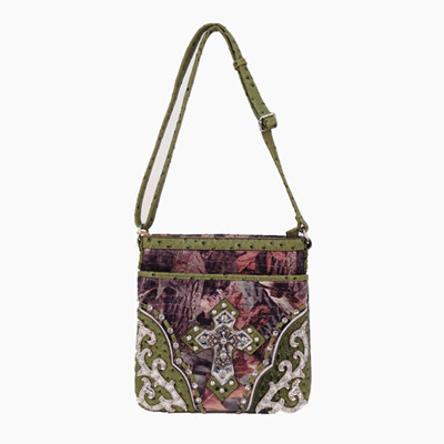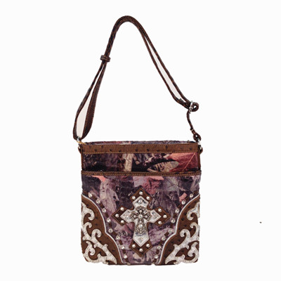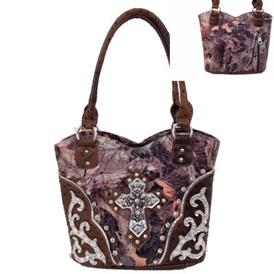 CONCEALED CARRY CROSS CAMO HANDBAG BROWN