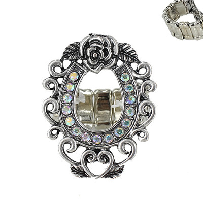 13112004 HORSE-SHOE ROSE RING CLEAR AB
