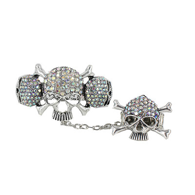 13112011 SKULL BANGLE WITH RING CLEAR AB