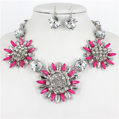 13110802 FLOWER BIB NECKLACE HOT PINK