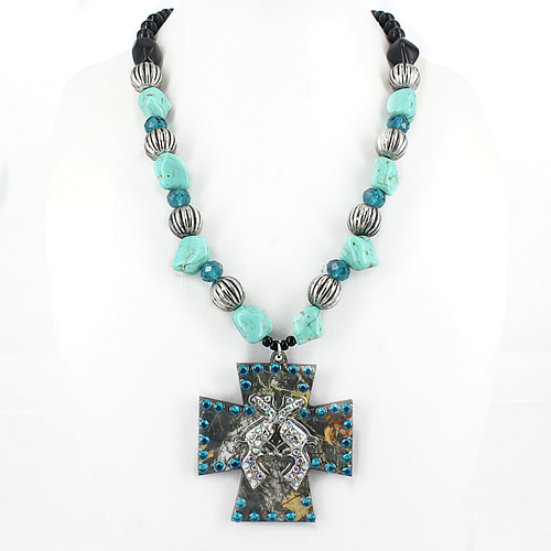 20-13061647 CROSS CAMO NECKLACE TURQ