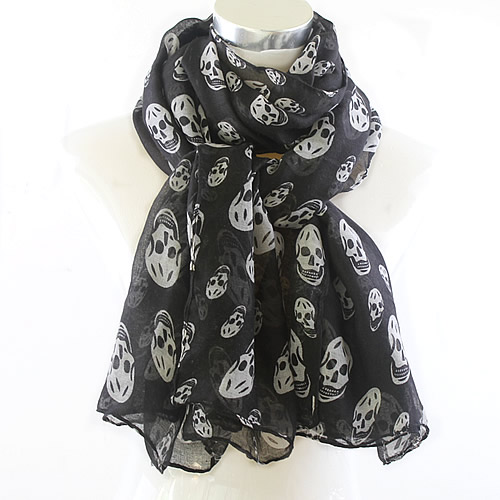 3170-13071402 SKULL VISCOSE BLACK SCARF