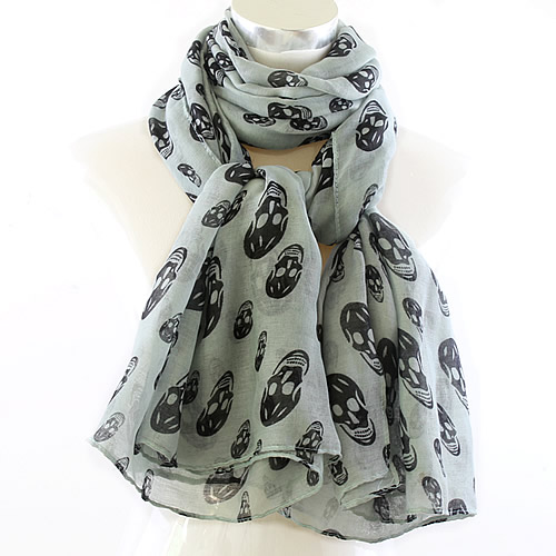 3170-13071402 SKULL VISCOSE GREEN SCARF