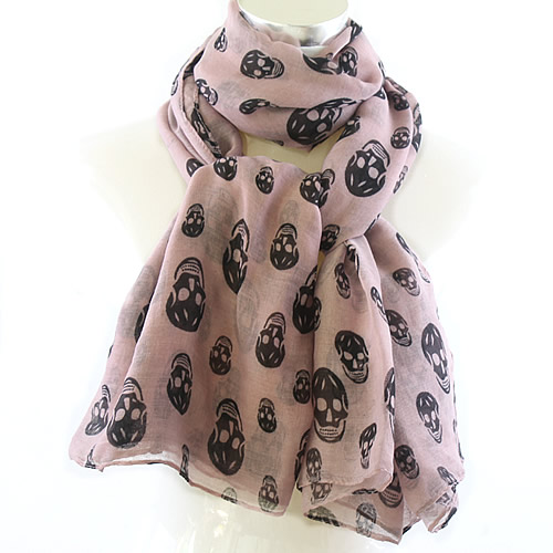 3170-13071402 SKULL VISCOSE PINK SCARF