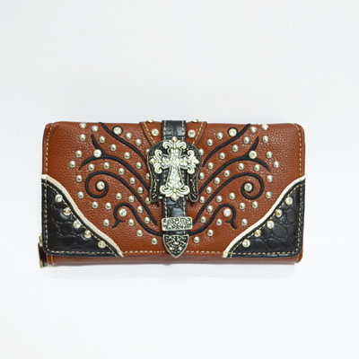 WL12174-1 BUCKLE CROSS WALLET BROWN