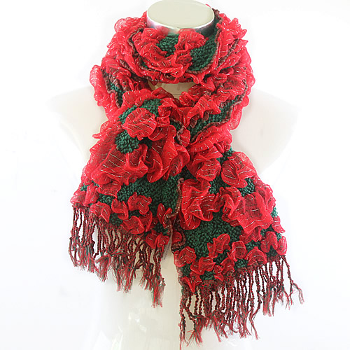 3122-13080303 KNITTED FLOWER TURQ SCARF