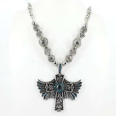 20-13051733 CROSS NECKLACE TURQ CLEAR AB