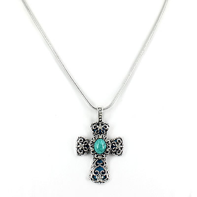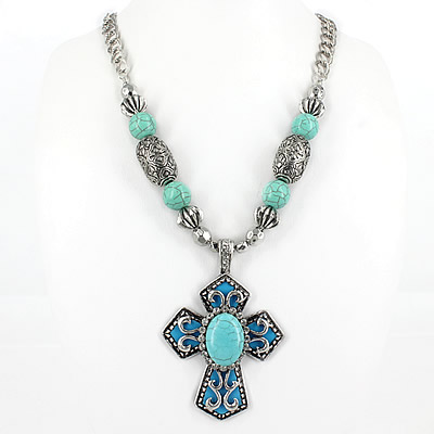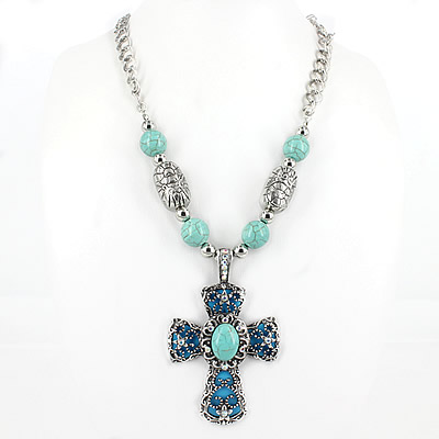 20-13051735 CROSS NECKLACE TURQ CLEAR