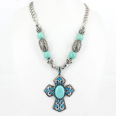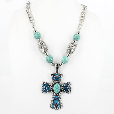 20-13051725 CROSS NECKLACE TURQ BLUE