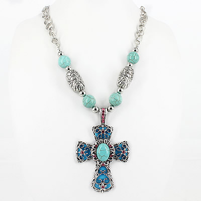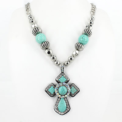 20-13051725 CROSS NECKLACE TURQ CLEAR