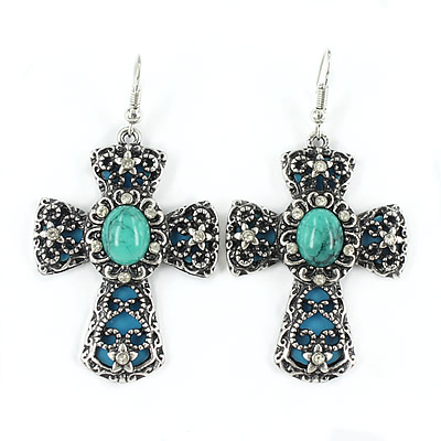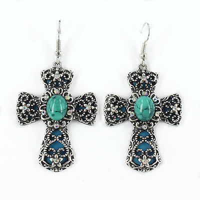 20-13051731 CROSS EARRING TURQ CLEAR AB