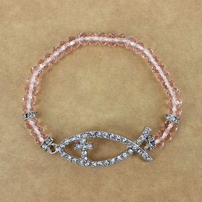 20-13051903 CROSS BRACELET CRYSTAL PINK