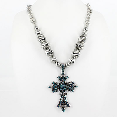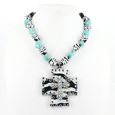 20-13042601 ZEBRA CROSS NECKLACE TURQ