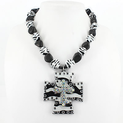 20-13042601 ZEBRA CROSS NECKLACE BLACK