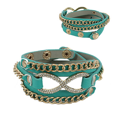 38-13050203 LEATHER BRACELET GOLD TURQ