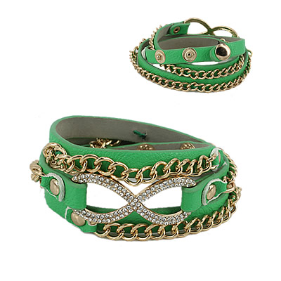 38-13050203 LEATHER BRACELET GOLD GREEN