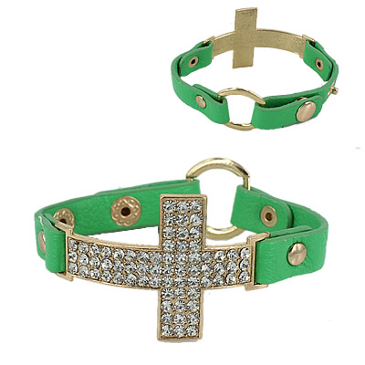 38-13050204 LEATHER BRACELET GOLD GREEN