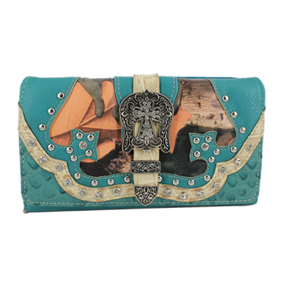 WL12134-1B ZIPPER WALLET CAMO TURQUOISE